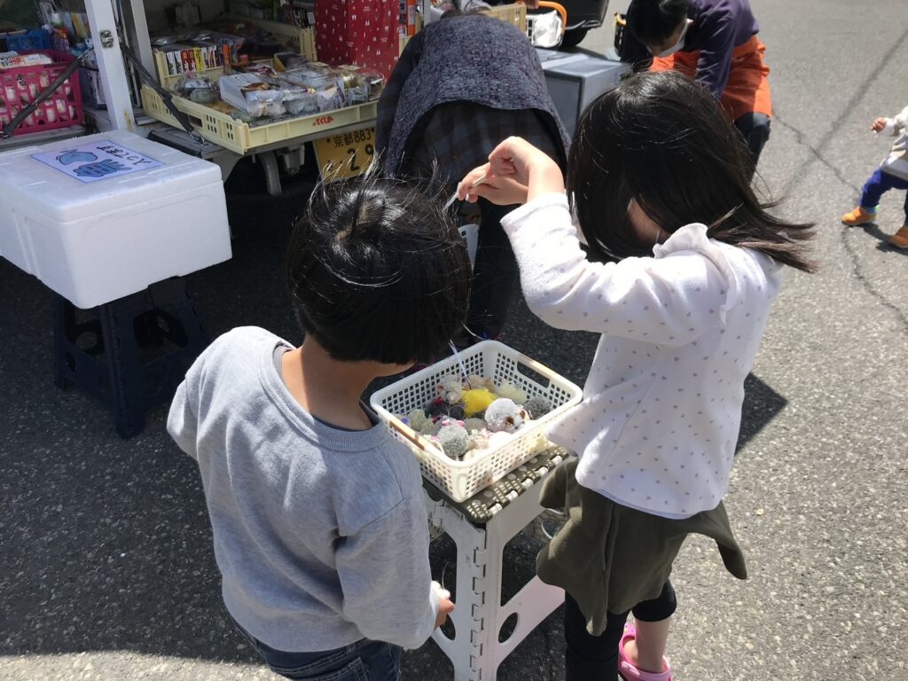 子どもたちに向けてだけでなく、お菓子のつかみ取りやビンゴゲーム、サイコロゲームなんかもしました。